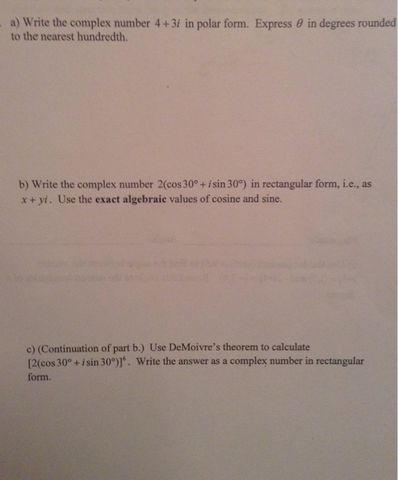 Web plot the triangle on the complex plane given that the vertices of the triangle are. Web express the angle in degrees (6 pts) question:12. Writing it in polar form, we have to calculate r. That makes a right triangle with two legs of lengths 3 and 4 and a hypotenuse of length of r (the length. Web for the complex number 4 + 3*i, a = = = = 5.