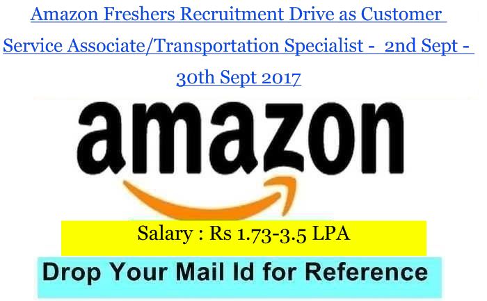 Amazon Freshers Recruitment Drive as Customer Service Associate/Transportation Specialist 2nd