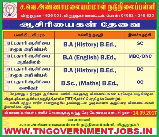 SV Annamalai Ammal Middle School Virudhunagar (Govt Aided) BT Assistant English Teacher, Social