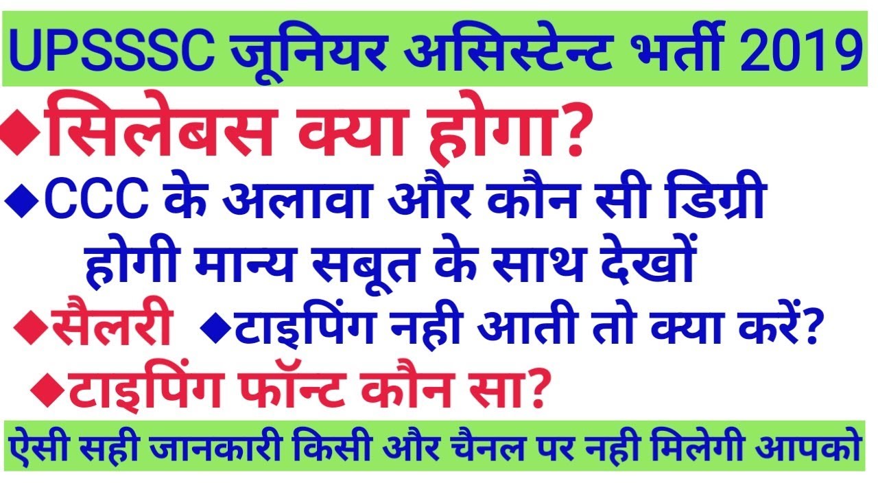 UPSSSC JUNIOR ASSISTANT क्या है Syllabus,Salary, CCC समकक्ष, टाइपिंग फॉन्ट सभी जानकारी YouTube