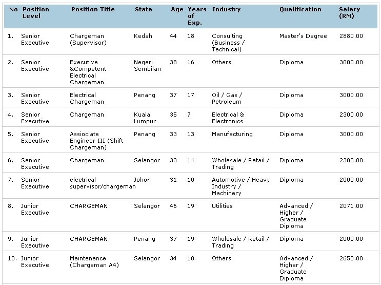 Chargeman Malaysia Salary Qerja Empowering Your Career The most typical earning is 48,347 myr.