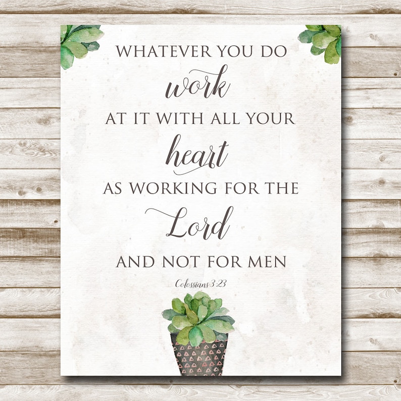 Colossians 323 Printable Inspirational Bible Verse Succulent Etsy