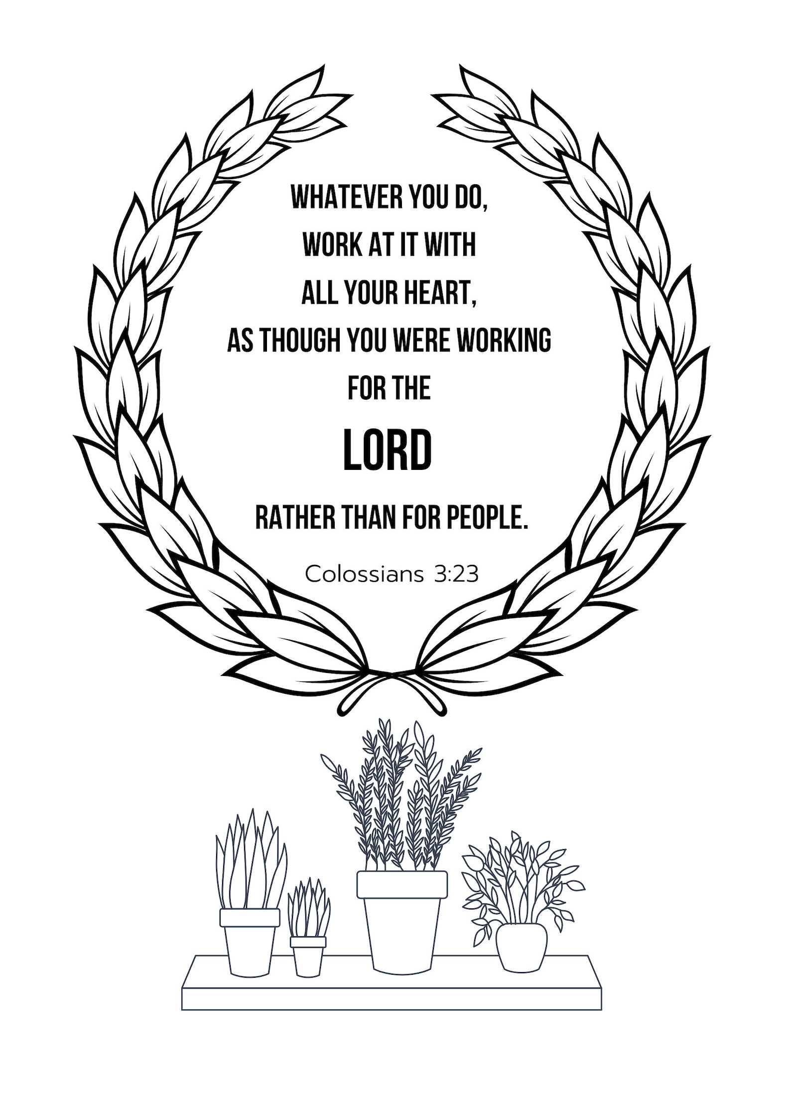 Web andaz press unframed black white wall art decor poster print, bible verses, colossians 3:23: Web check out our colossians 3 23 print selection for the very best in unique or custom, handmade pieces from our prints shops. Web introduction to colossians 3. ‘are you sleeping?’) whatever you do, work at it with all your heart as working for the lord not for men. Find this pin and more on c&co blog by c&co | steph. Baptist the lord jesus is my rewarder and we are serving him contributed by william r. Web study the book of colossians in the bible when you use this printable outline to discover historical events, timelines and themes. Web check out our colossians 3:23 printable selection for the very best in unique or custom, handmade pieces from our shops. Web colossians 3:23 new international version 23 whatever you do, work at it with all your heart, as working for the lord, not for human masters, read full chapter colossians 3:23. This free printable coloring page is of a bible verse that tells us that we should do everything as if it was an act of worship.