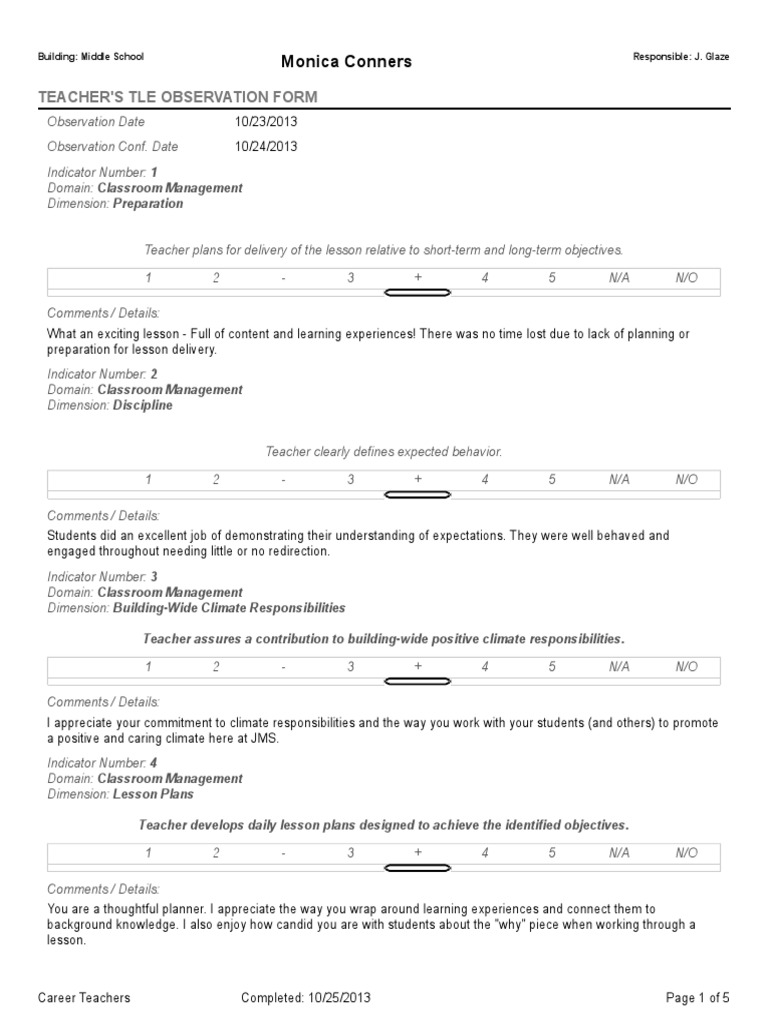 monica conners career teachers teachers tle observation form Classroom Management Teachers