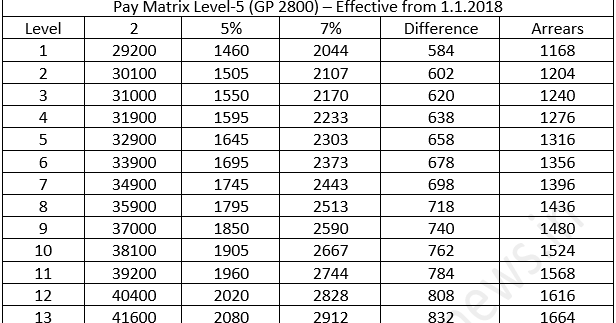 Distinct Pay Tables as per 7th CPC for Level 5 — CENTRAL GOVERNMENT EMPLOYEES NEWS