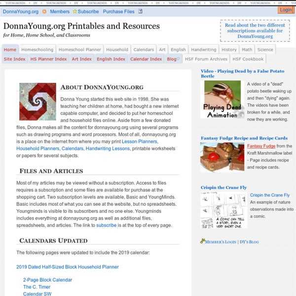 Donnayoung.org offers printable resources for home, homeschooling, and school, homeschool planners, homeschool planning tips with lesson plan examples, printable calendars, printable. Donna young printables and resources free printable for homeschooling on a variety of subjects including planning pages, math drill, handwriting pages, art lessons, etc. Donna young offers the largest selection of printable homeschool planners. Printable calendars made by donna young. Donna young's amazing website is definitely the place to start when you're looking for free homeschooling resources.
