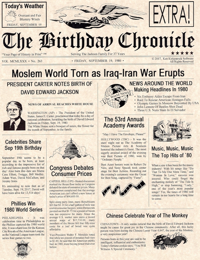 Printable Birthday Newspaper with Facts from the Day You Were Born
