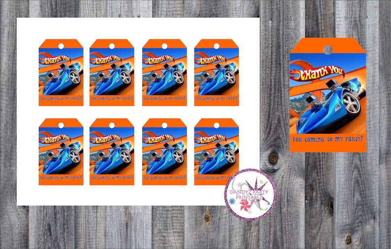 Hot Wheels Birthday Party Thank You Tag Thank by DreamsDigital