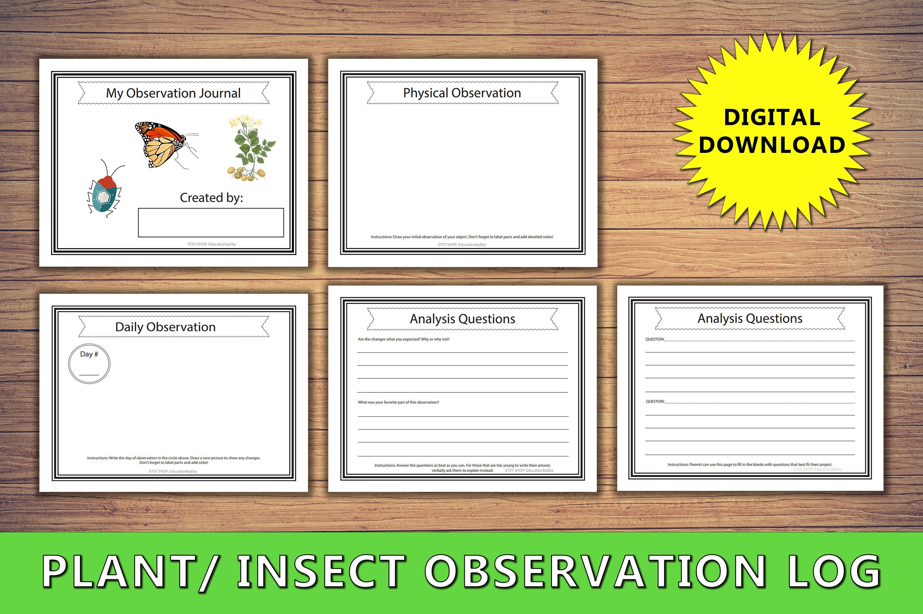 Kids Plant Observation Log Insect Observation Log Etsy