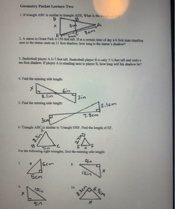 Solved Geometry Packet Lecture Two 1. If triangle ABC is