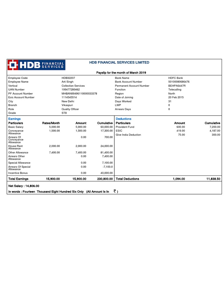 Hdb Financial Services Limited Earnings Deductions Government Finances Economies