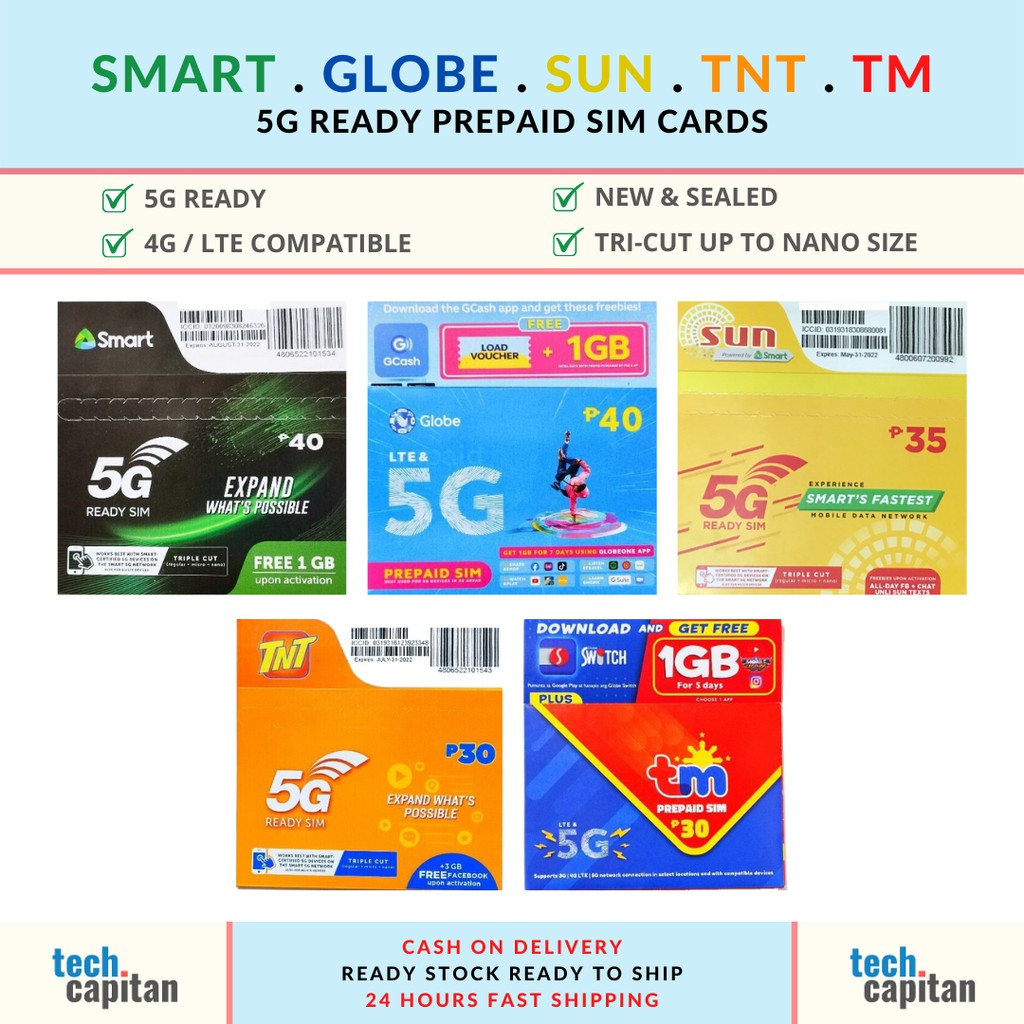 5G Ready Prepaid SIM Cards Smart Globe Sun Touch Mobile TM Talk n Text TNT Shopee Philippines