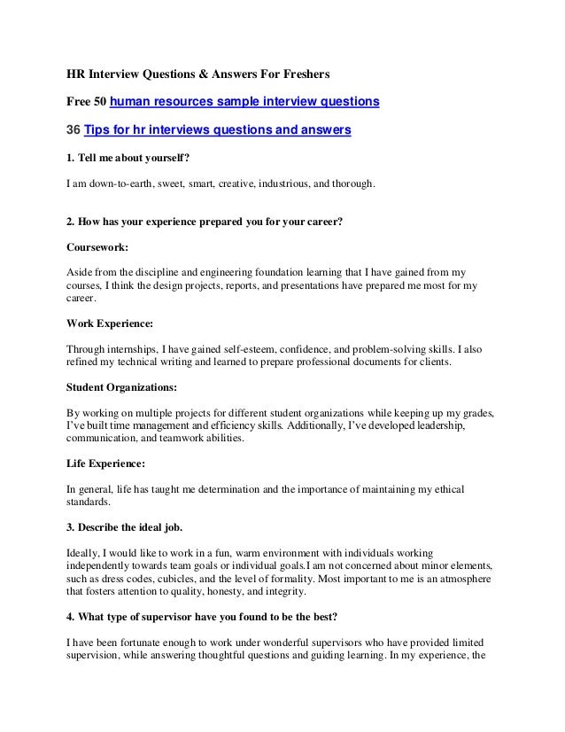 Do you have any questions for me? When answering interview questions with hr, you need to reveal your interviewer that it does. Hr interview questions for freshers! Hr interview questions for experienced. Why did you leave your.