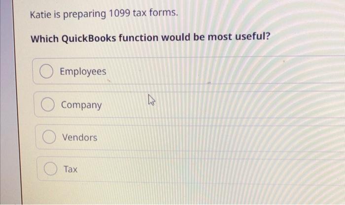 Solved Katie is preparing 1099 tax forms. Which QuickBooks