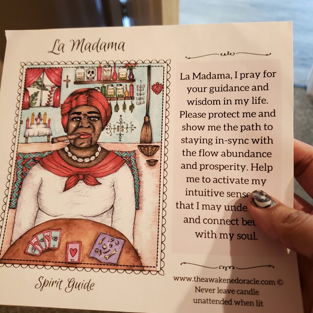 O grand spirit of la madama x (say name), give me courage and strength. La madama is a powerful patron for healers, shamans, psychics, fortune tellers, & card readers. La madama 7 day candle prayer ” o holy spirit of la madama. By the virtues that the father, son, and holy ghost have placed in you, i ask you. “oh holy spirit of la madama, i implore your sublime influences, for my protection.