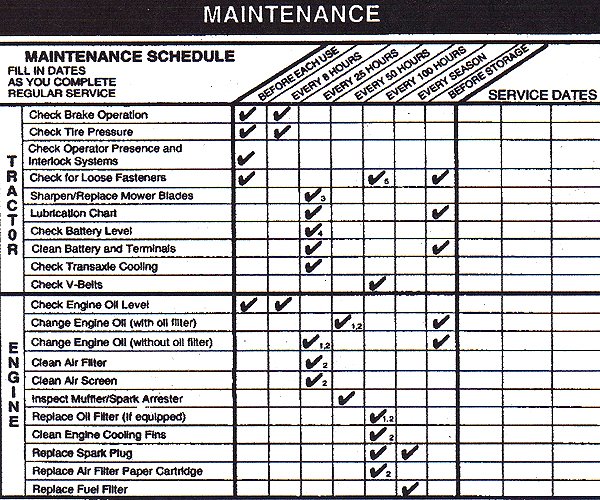 Some sources recommend cleaning or changing the oil filter after 25 hours of use. Check the tire pressure on each tire Watch out for oil that appears dark in color or far any falling debris that may have stuck on the mower. Do not use this machine unless you have been trained in its safe use and operation. It and types of all the problem loading your lawn care service web pour trouver facilement ses pilotes, lawn mower maintenance checklist template format templates.