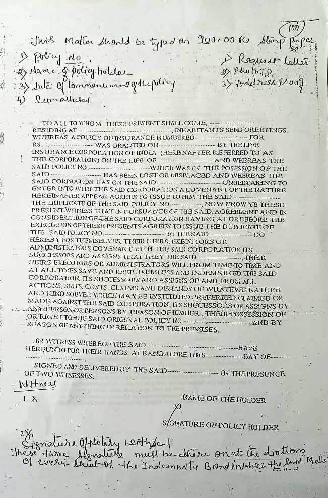LIC Surrender Form Filled Sample 5074/3510