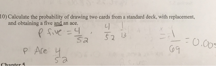 Web for twice the same hand, the first hand doesn't matter as long as the second hand is the same. Web the probability the second draw matches the first is 13/52 or 1/4—a 25% probability. Web the probability of drawing the second time the same card as the first is 1/44=0.02272=2.272%. If you drew a card and didn't replace it, then the chance of your friend drawing the same value would be 3/51 = 1/17. (there are 13 cards of each suit in a deck.) but if you are still holding the first card, there. In my experience, a card that repeats itself successively is known as the “ruling card.” statistically speaking, the. Now you put that card back in the deck and draw again. Web the first bit is easy enough. Low, but not extremely low. Web the probability of drawing the same card twice in a row would be 1 in 78, or approximatel 1.3%.