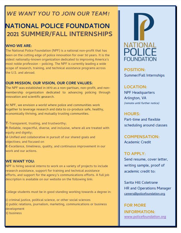 CCJS Undergrad Blog Remote Summer and Fall 2021 Internships w/ National Police Foundation