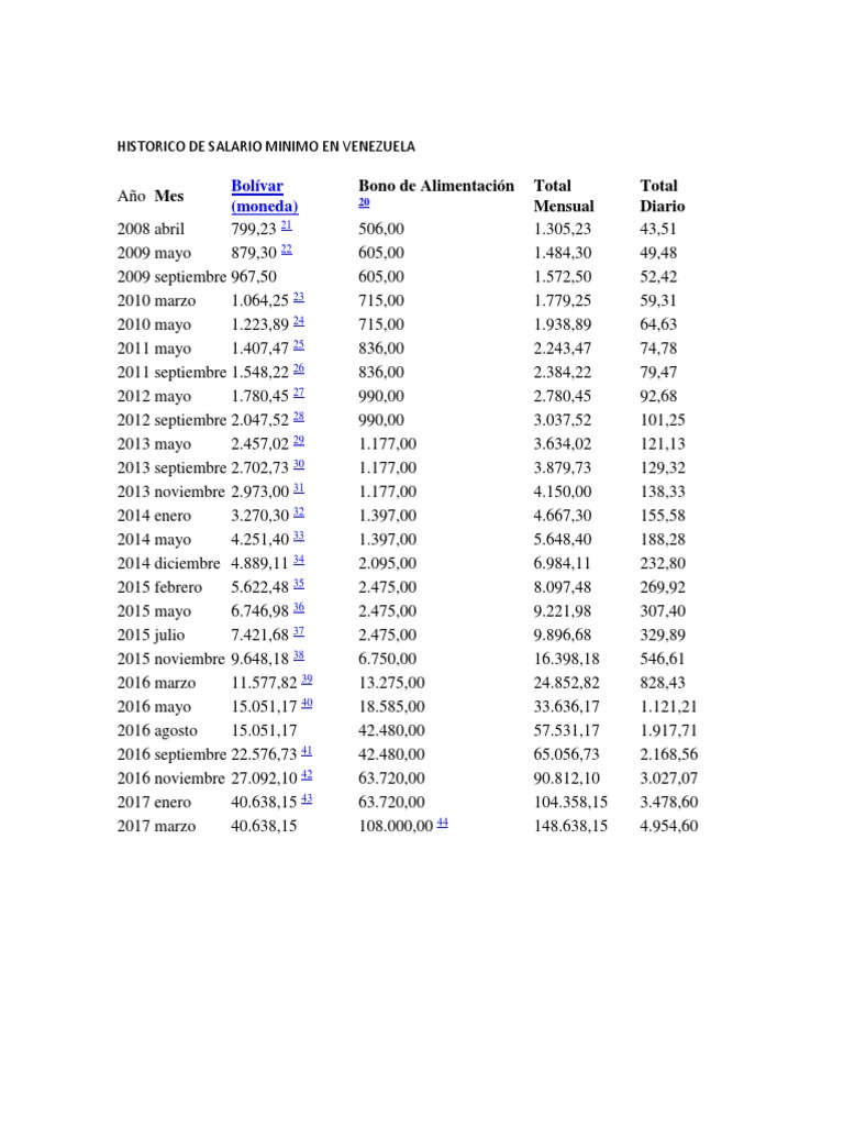 Efemérides de venezuela y del mundo 2.059,89 abrir bs. El salario mínimo en venezuela fue establecido por primera vez en el año 1974. Web up to $3 cash back sueldos y salarios Nº 40.965 del 12/08/2016 vigencia 01/09/2016. Histórico del salario mínimo en venezuela.