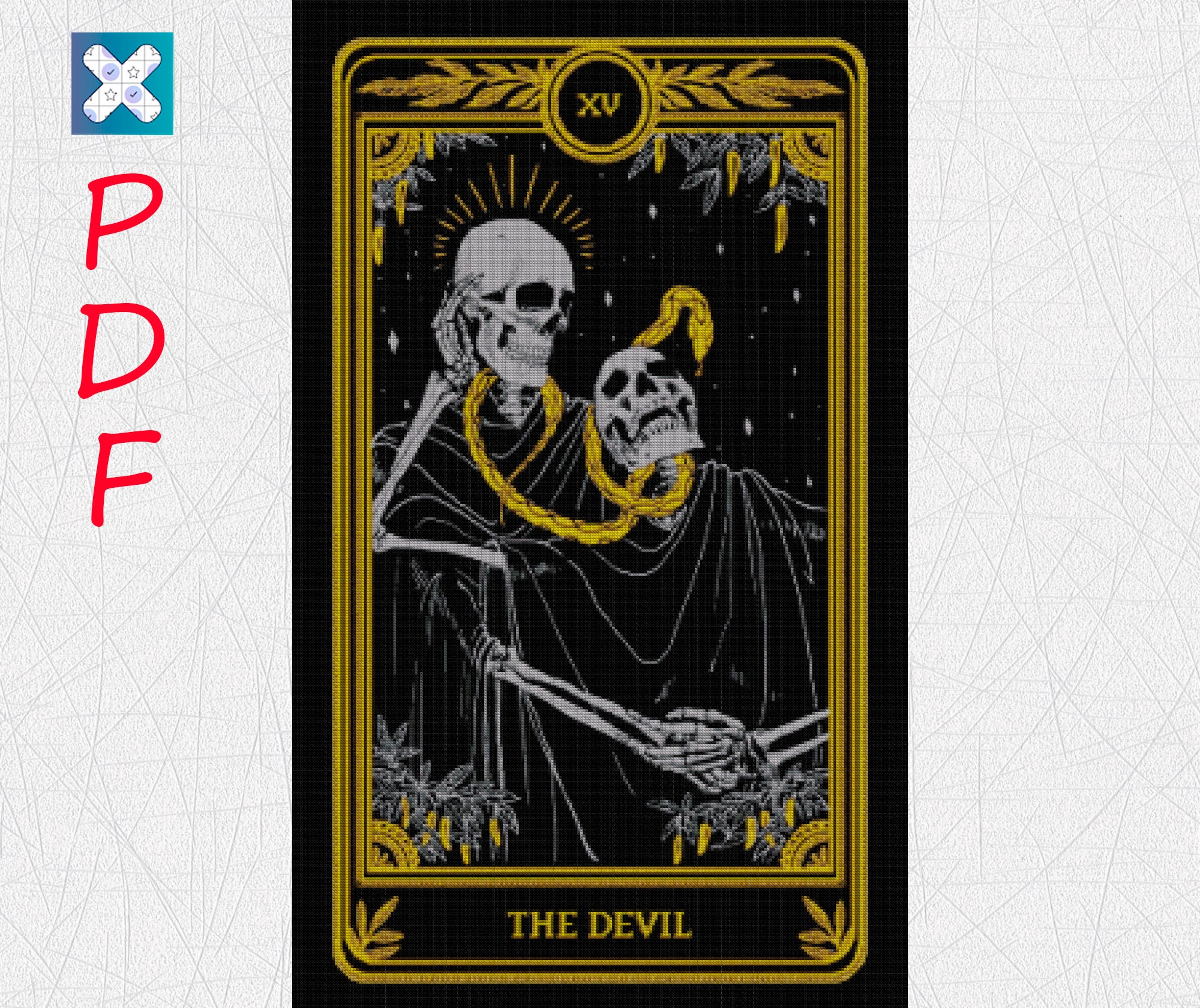 Tarot cards cross stitch pattern Gothic Skeleton cross stitch Etsy