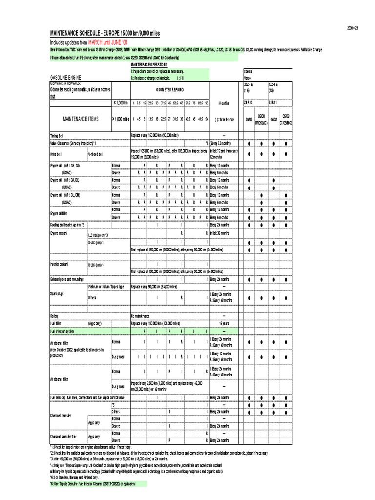 Toyota Corolla Wagon Maintenance Schedule printable pdf download