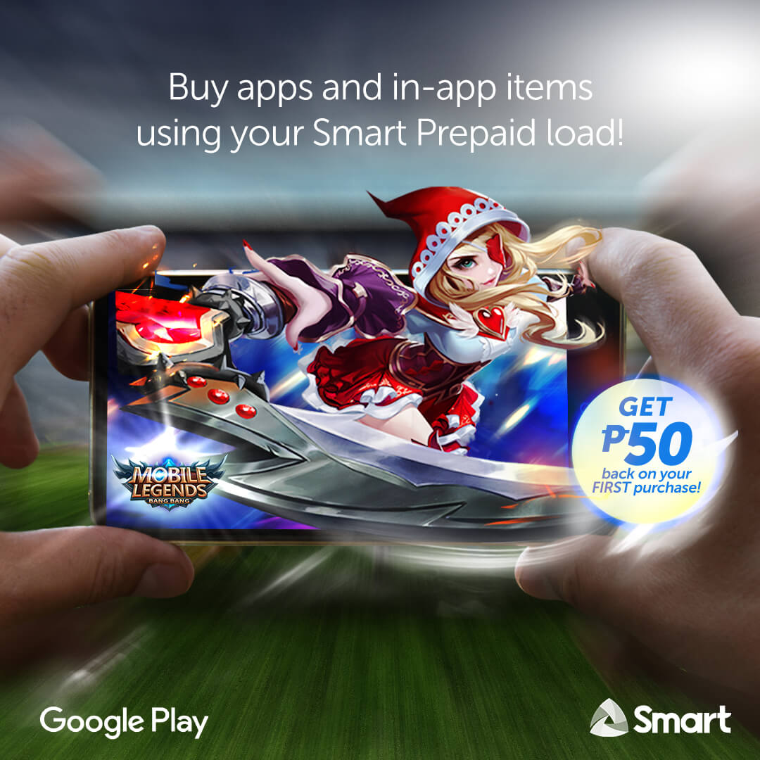 Smart gives you P50 cash or load back on your first mobile purchase on Google Play BENTEUNO