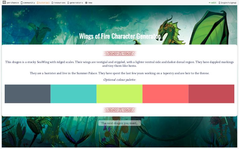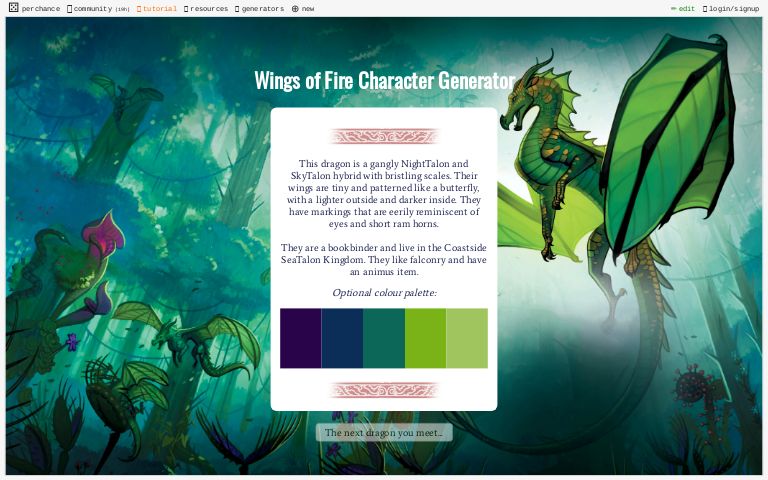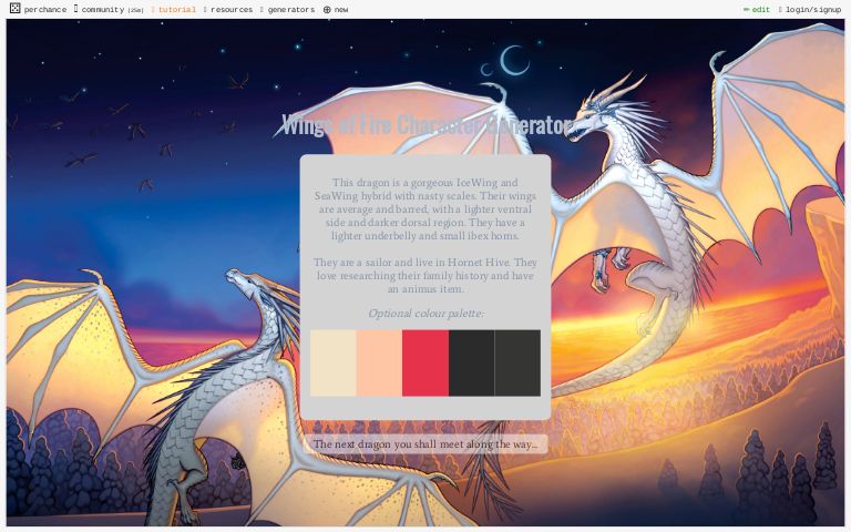 An updated version of pidgepudge's (formerly blacklnk's) wonderful dragon builder. A second chance to prove to queen scarlet i'm no fool; You're not obligated to use the oc you make of course, but i would like to see it in the comments if you have time! A wings of fire oc generator by saltyspectre! The power of wings of fire;